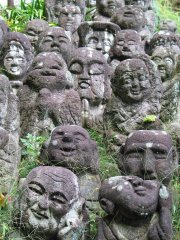 秋の嵯峨野で羅漢さんと遊んだ。(2001年10〜11月 PowershotG2で撮影)